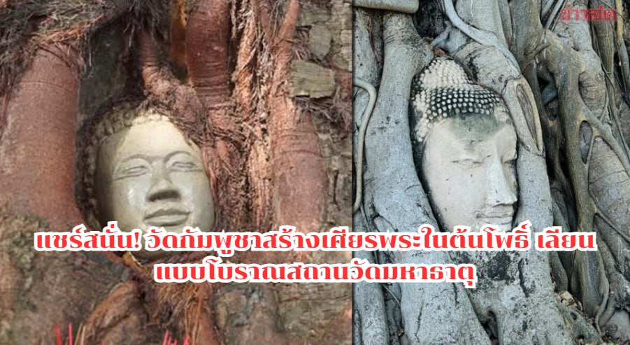 วัดกัมพูชา สร้างเศียรพระในต้นโพธิ์ คล้ายวัดมหาธาตุ
