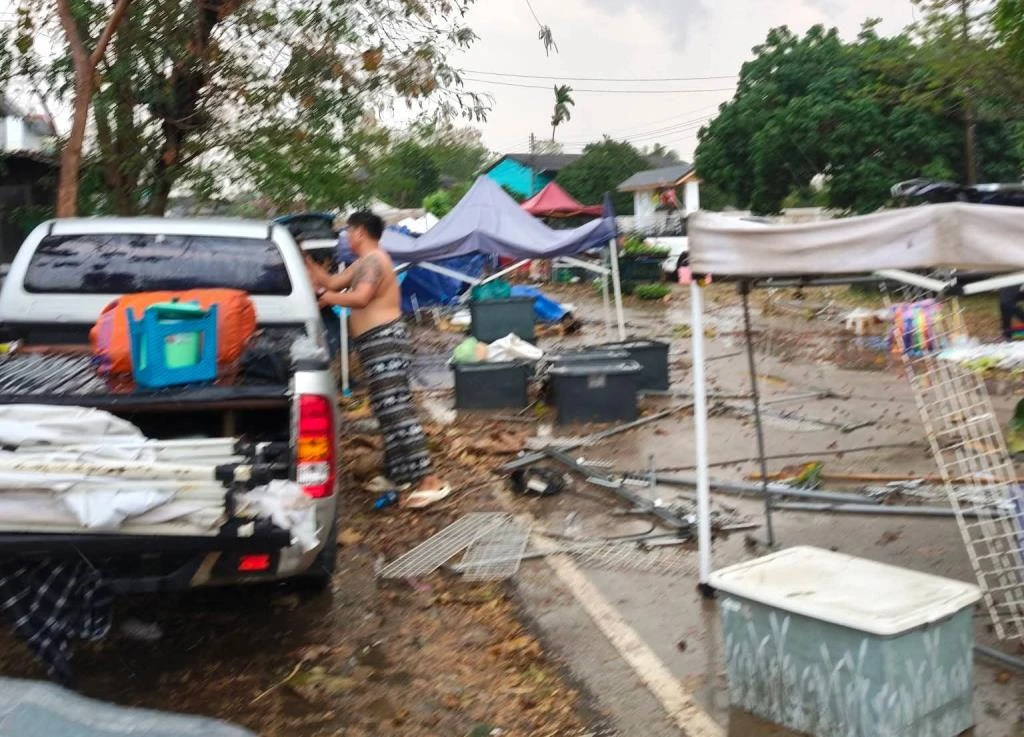 เกิดเหตุระทึกขวัญขึ้นในพื้นที่จังหวัดพะเยา เมื่อมวลอากาศเย็นปะทะกับอากาศร้อนจัดส่งผลให้เกิด พายุฤดูร้อนถล่มพะเยา อย่างรุนแรง ลมกระโชกแรงพัดพาเต็นท์ร้านค้าภายในตลาดนัดคลองถมปลิวว่อนไปตามกระแสลม สร้างความตื่นตระหนกให้แก่พ่อค้าแม่ค้าและประชาชนที่มาจับจ่ายใช้สอย นอกจากนี้ยังมีรายงานความเสียหายอย่างหนักที่โรงพยาบาลส่งเสริมสุขภาพตำบล (รพ.สต.) ในพื้นที่ ซึ่งถูกลมพายุพัดถล่มจนโครงสร้างบางส่วนได้รับความเสียหายยับเยิน ⛈️
